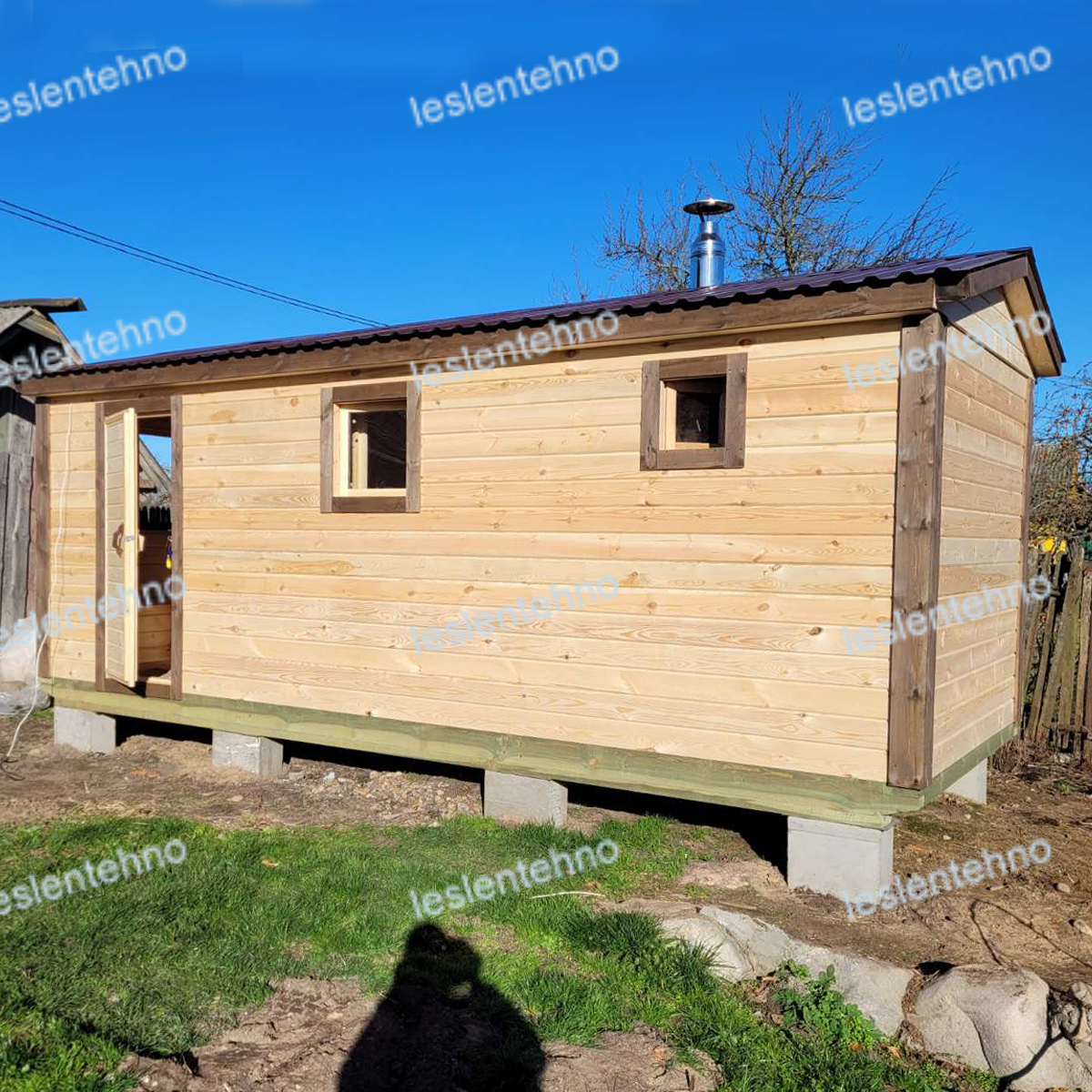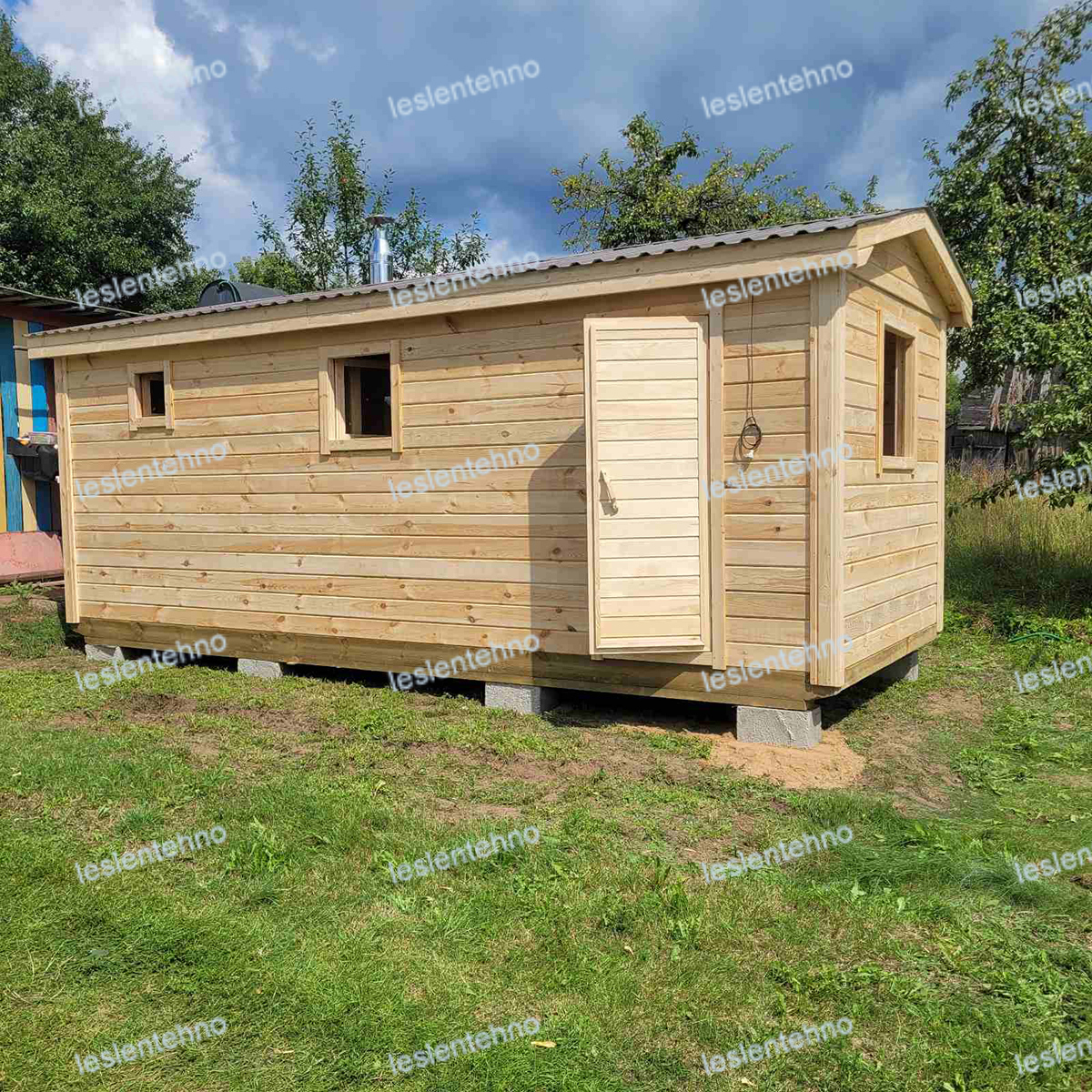 - ДВЕРИ — КАРКАСНЫЕ , ОБШИТЫ ВАГОНКОЙ / СТЕКЛЯННЫЕ (по желанию)