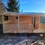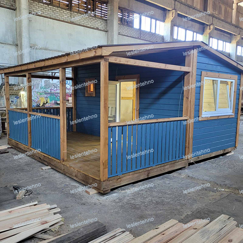 Готовая баня «Камелия» с террасой достаточно просторная для перевозных бань. Быстро прогревается и долго сохраняет тепло. Комфортная и уютная перевозная баня для принятия банных процедур и отдыха. На террасе бани после помывки будет здорово устроить чаепитие с семьей и друзьями. Готовая баня «Камелия» с террасой изготавливается, доставляется и устанавливается за считанные дни после оформления заказа, в строго оговоренные сроки. Терраса пристраивается отдельно после доставки и установки готовой бани на территории заказчика.