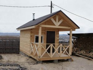 готовая баня «Талисман» с террасой станет отличным решением для любителей банных процедур, а также для владельцев небольших загородных участков земли. Мы изготовим баню  на своем производстве, доставим и установим уже готовую баню на участке заказчика в кратчайшие сроки. Сразу же после установки баня готова к эксплуатации. Функционально такая баня ничем не отличается от капитального аналога. Срок службы мобильной постройки составляет несколько десятков лет, то есть при правильной эксплуатации баня прослужит очень долго. Гарантия качества материалов, постройки и услуг! По желанию заказчика возможна любая комплектация готовой бани «Талисман», а также перепланировка!